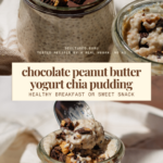 This chia pudding is basically a peanut butter cup with a lot more fiber, protein, and probiotics! Chocolate and Peanut Butter Yogurt Chia Pudding works perfectly as both a healthy meal-prep breakfast and a nutritious snack. It only takes about 10 minutes to mix together.