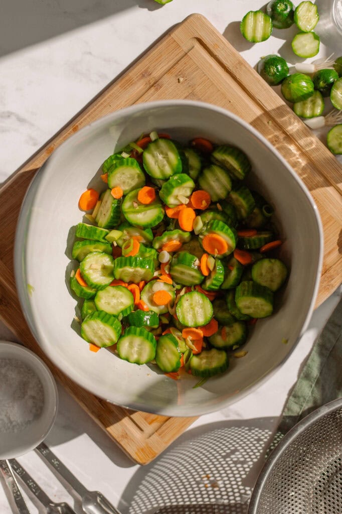 Making Cucumber Kimchi Inspired Spicy Garlic Pickles