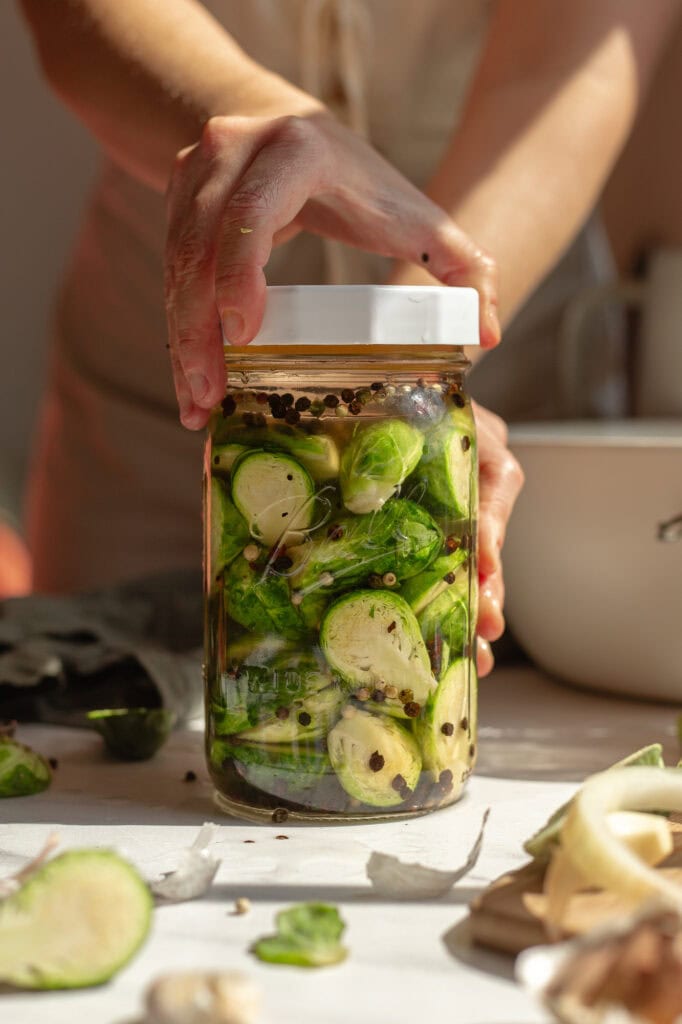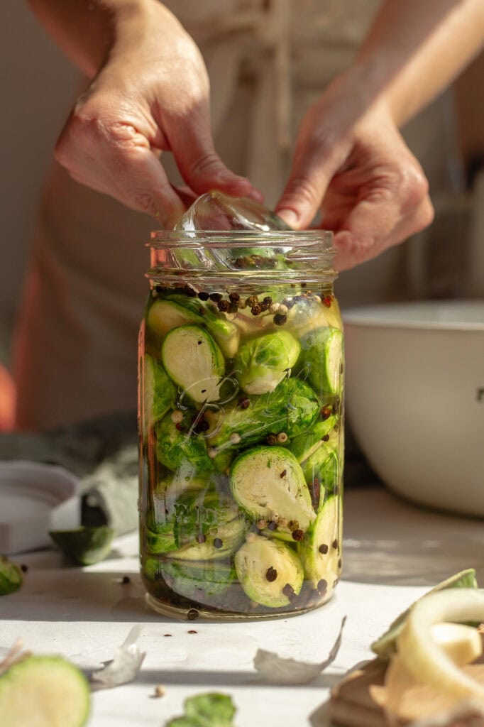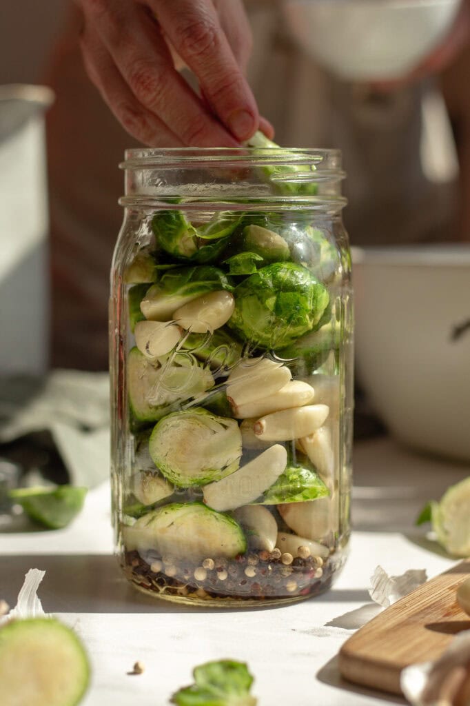 - This recipe at 1x works best with a 32-ounce wide-mouth jar. Please see the equipment recommendations above. Please use fresh Brussels sprouts (not “triple washed”).