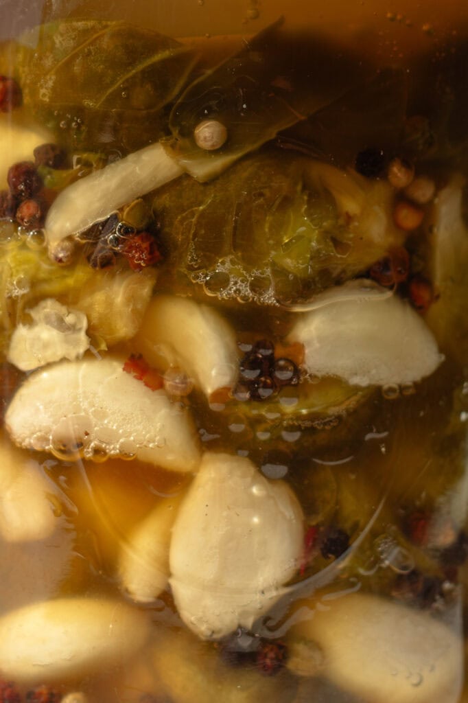 For this recipe, I wanted to try something new with spices. I’ve been experimenting with toasting certain spices before using them in meals and recipes. So I figured why not try out toasting my spices for fermentation too! I pan toasted the peppercorns to bring out the flavors and essential oils before tossing them in the jar with the Brussels sprouts.