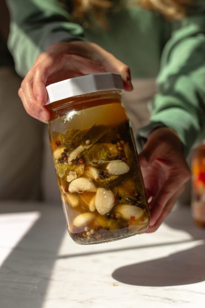 Fermented Brussels Sprouts with Garlic and Toasted Pepper