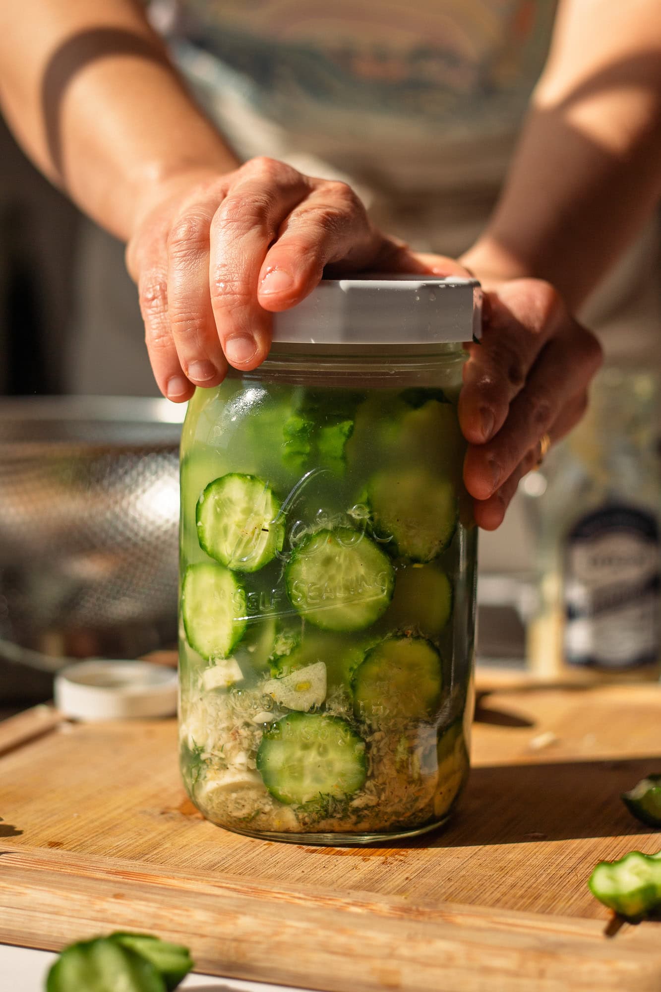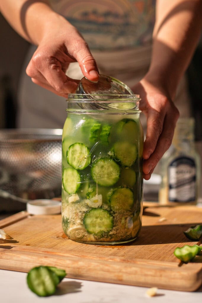 - Secure the lid to the jar (you don’t need to tighten it too much; just close it).