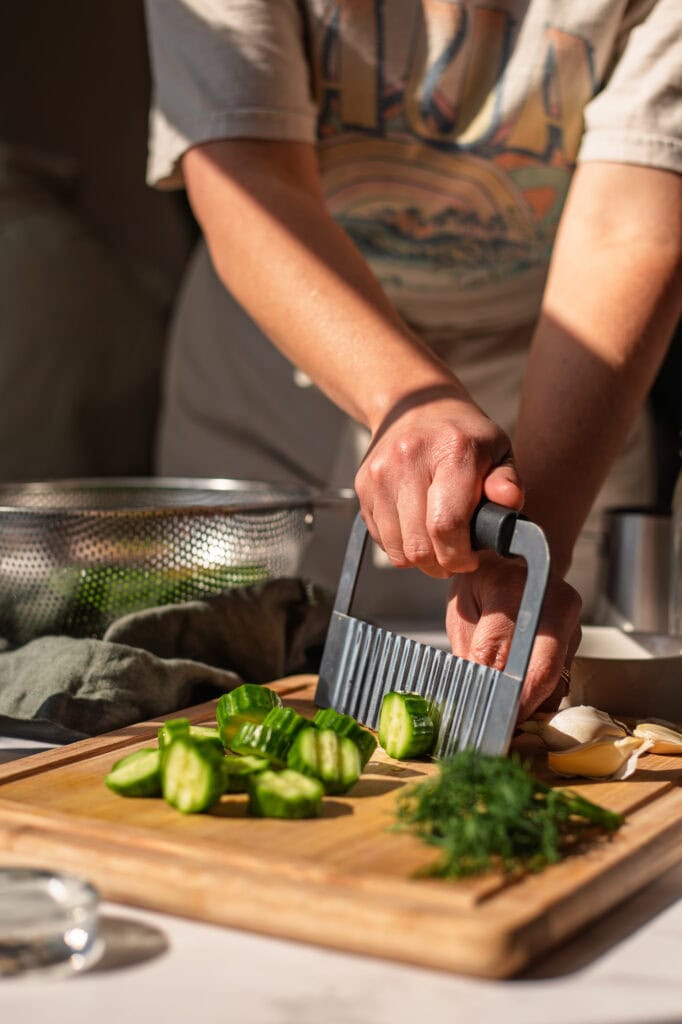 Don’t forget, as mentioned above, how you slice your cucumber matters. Stick to ripple cuts or spears/halves for the best results.