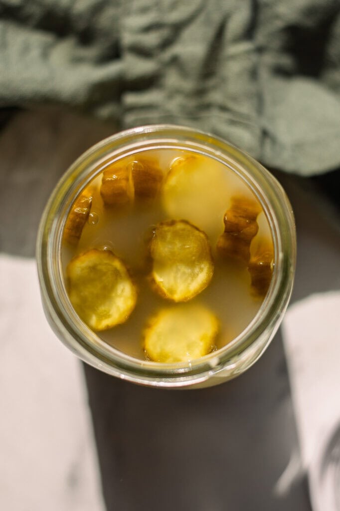 - Too salty for you? Pour off half the brine into an empty jar and top off the pickles with apple cider vinegar! Shake to combine. Save the brine to make my probiotic pickled garlic or probiotic pickled onions.
