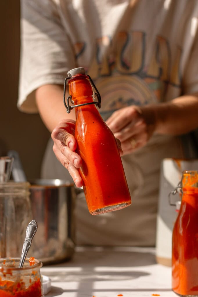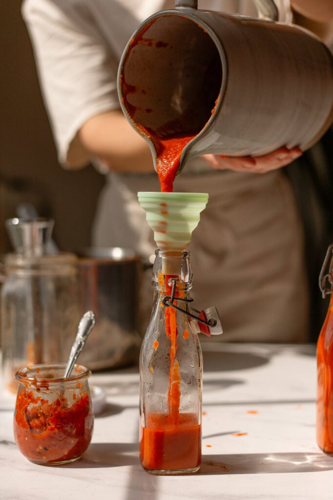 - Using a funnel, bottle the sauce. Store in the refrigerator. Use within a year for the best flavor. (If you’d like to gift this sauce, it can be out of the fridge for a bit).