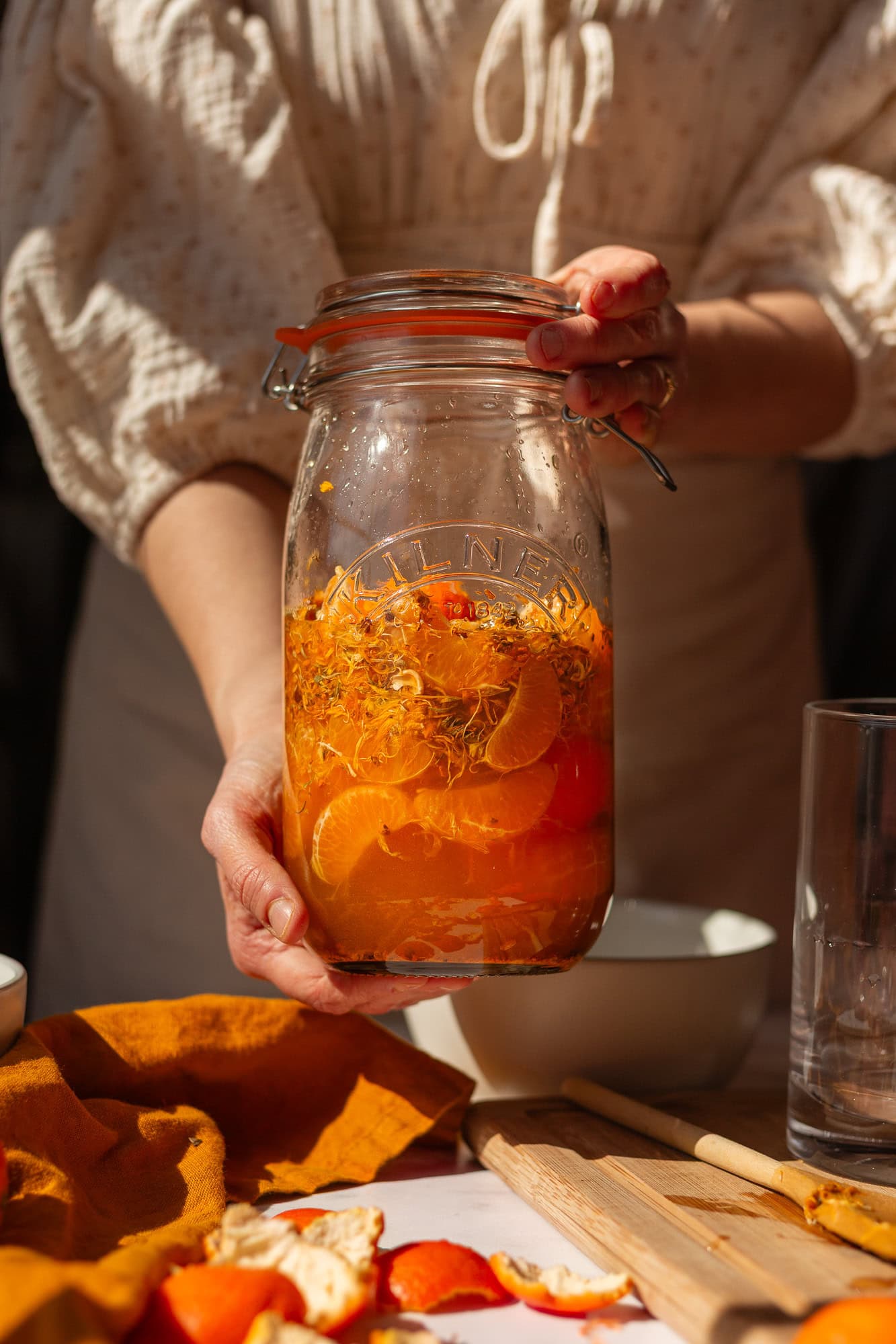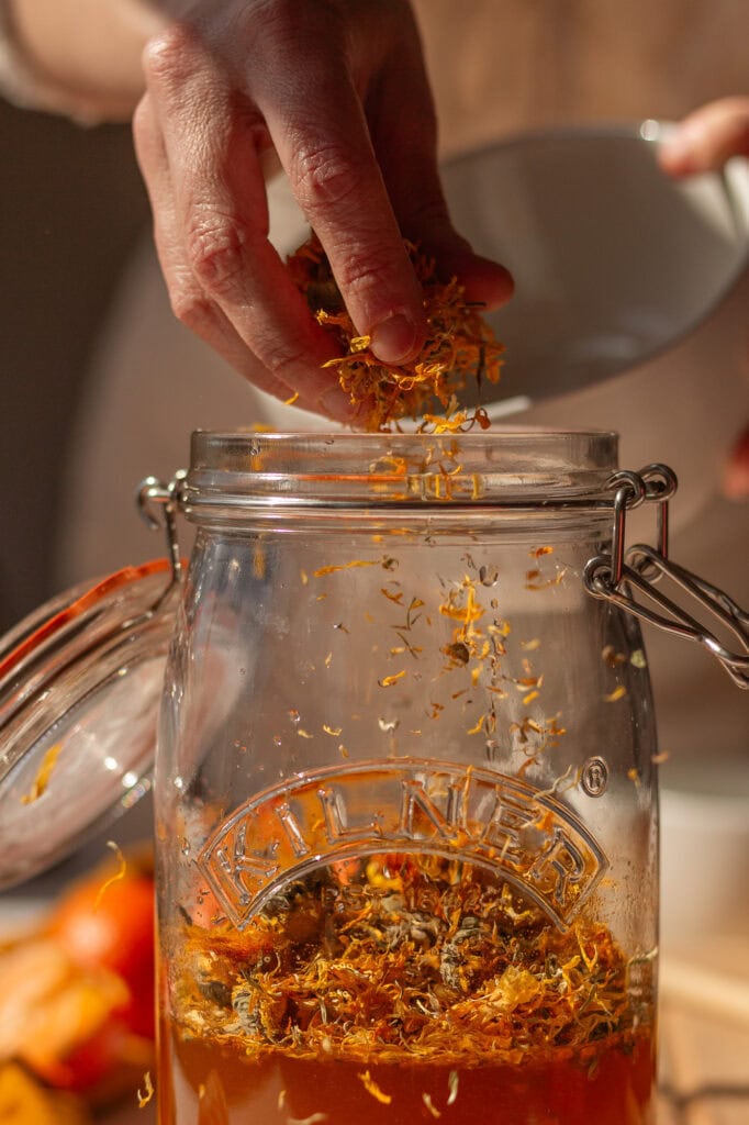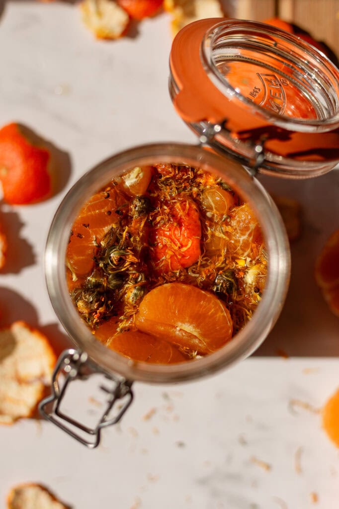 Pictured here in this blog is my go-to winter shrub combination: mandarins, calendula, and turmeric.