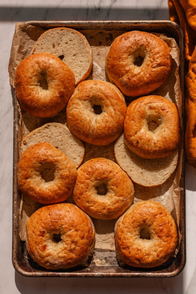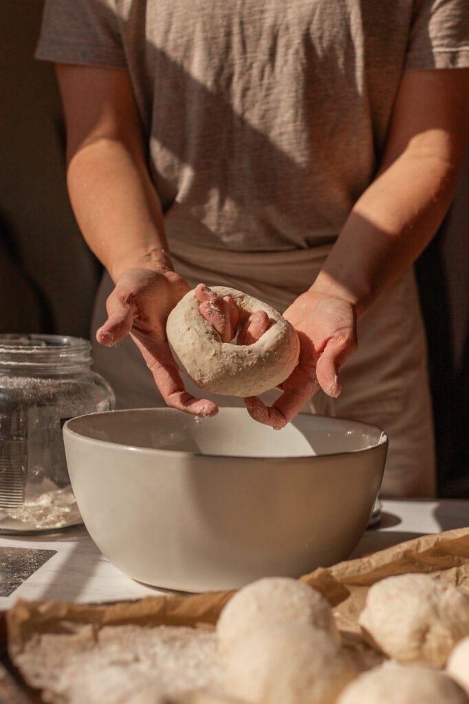 For those seeking an extra benefit of sourdough digestibility, there’s an optional overnight fermentation step in the fridge. The overnight fermentation enhances the bagels’ flavor and improves their digestibility.