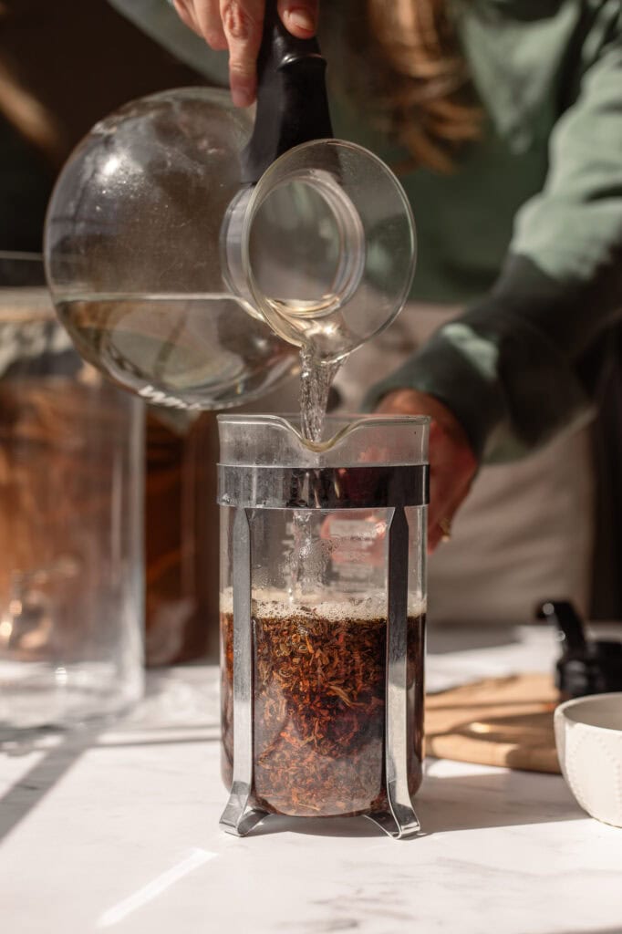 Setting up a SCOBY hotel is effortless. Start by placing all your extra SCOBYs in a large, clean jar. Then, brew a fresh sweet tea and let it cool to room temperature before pouring it over the SCOBYs.