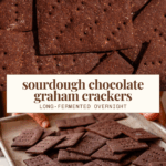 These sourdough chocolate graham crackers are fermented overnight for easier digestion and fantastic flavor. You can use sourdough discard or an active starter. Kids love these perfectly crispy, wholesome, and delicious chocolatey graham crackers!